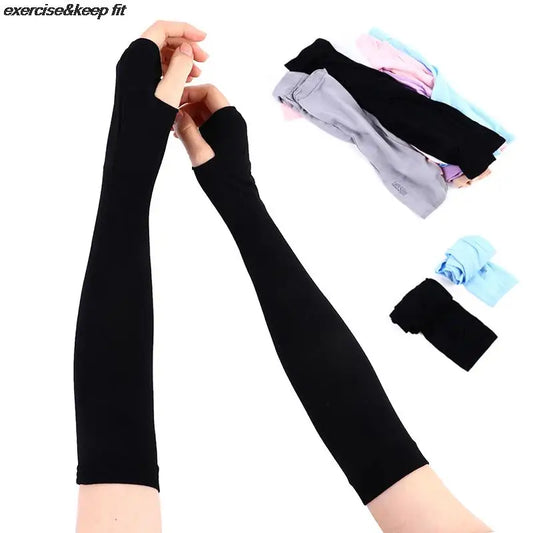 1Pair Ice Silk Sleeve Sunscreen Cuff Arm Sleeves Anti-Slip Summer Men Women Gloves Outdoor Riding Uv Sun Protect